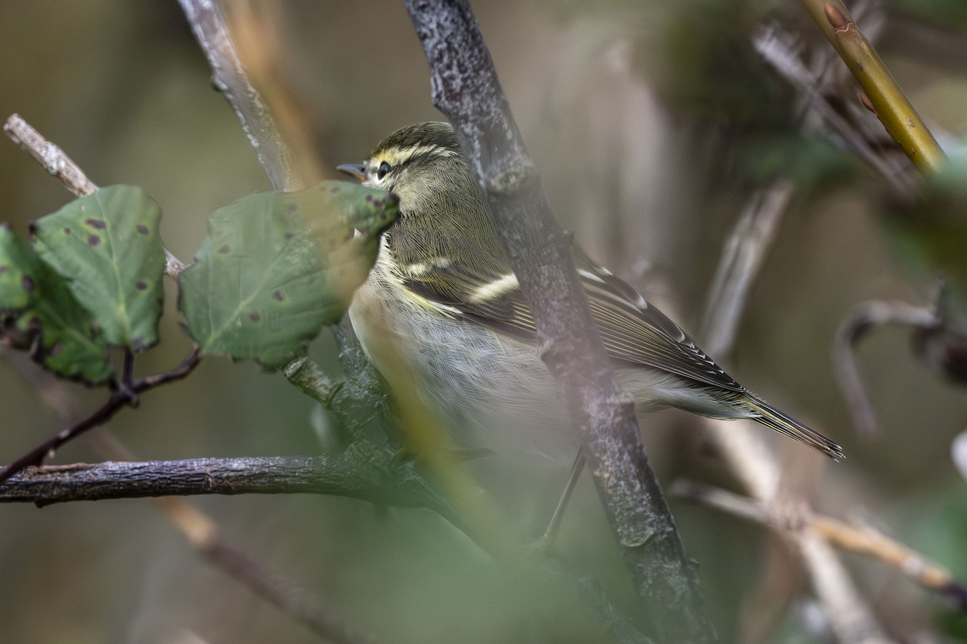 Insgesamt wurden mehrere Gelbbrauenlaubsänger gemeldet. Am Golfteich auf den Dünen zeigte sich einer, aber nicht so, wie man es sich wünschen würde, sondern nur ganz kurz und hinter Geäst.