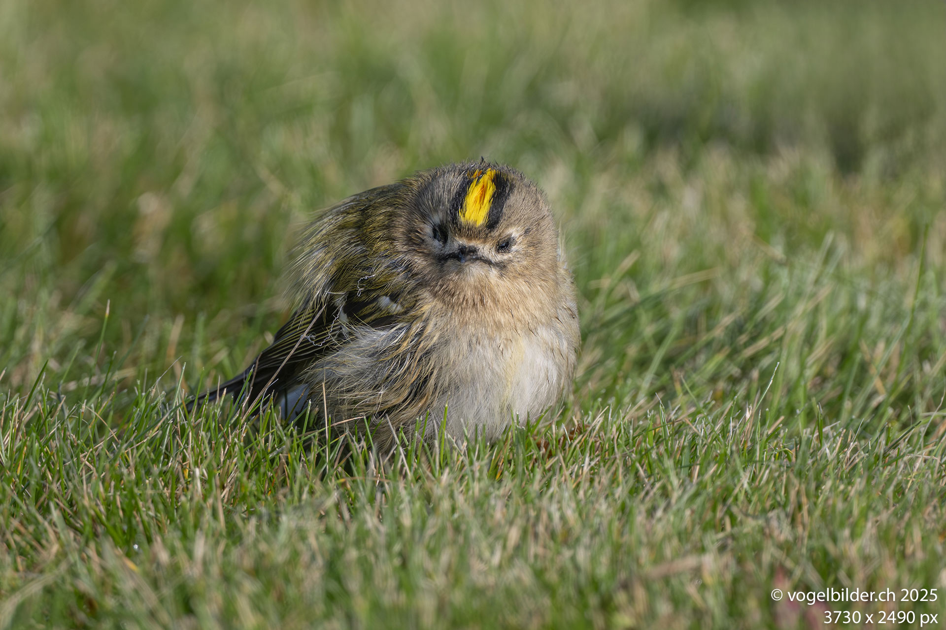 Solche Naherlebnisse begeistern immer wieder, und es sollte noch ein weiteres dazu kommen: Am 13. Oktober fand ein Masseneinflug von Wintergoldhähnchen statt. Ihr einziges Ziel war Nahrung, und sie liessen jegliche Vorsicht vermissen, landeten auch mal auf dem Stativ oder dem Fotorucksack. Einige sahen erbärmlich aus (Bild unten), erholten sich aber sehr schnell und futterten dann wild drauflos.