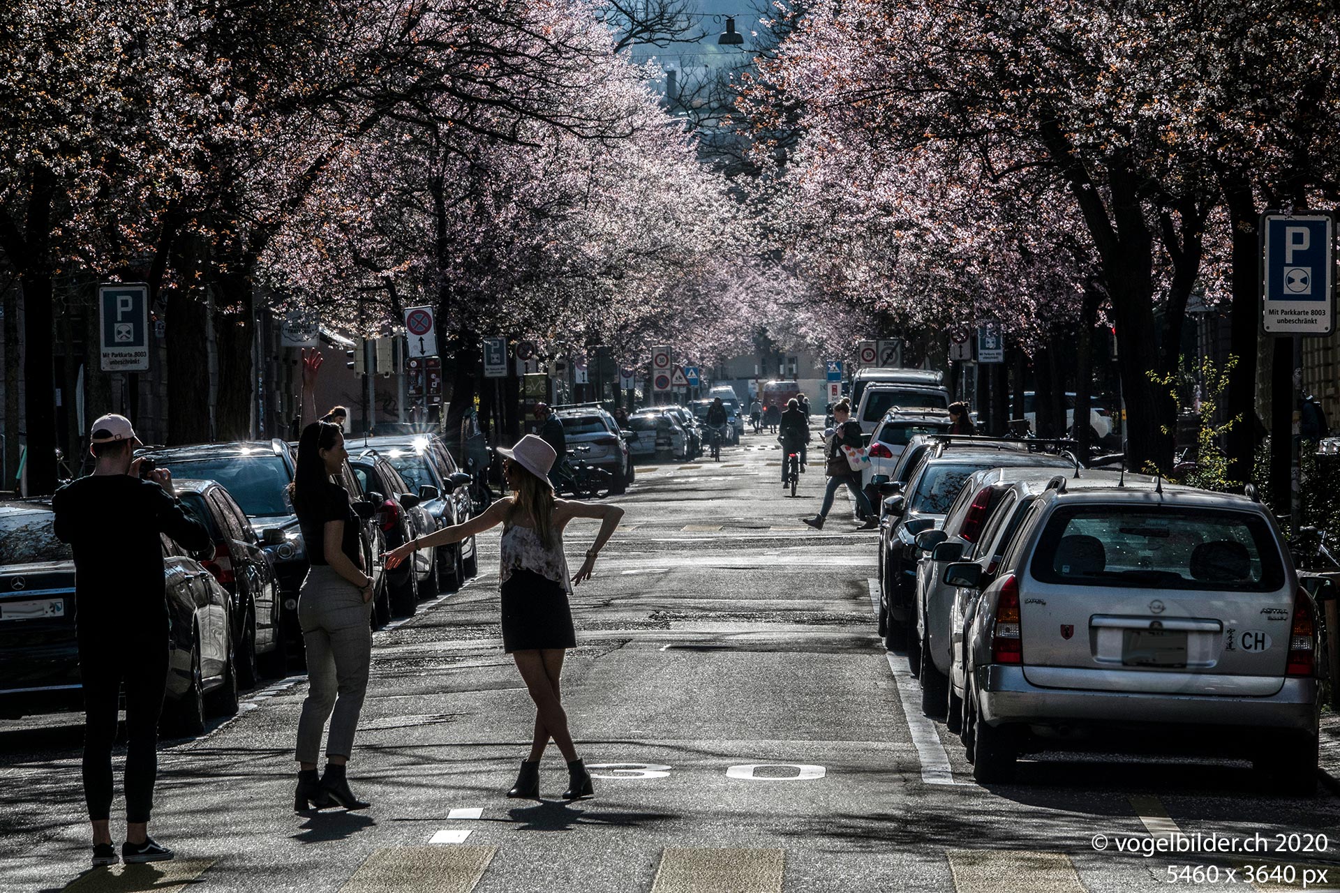 Dafür erschliesst sich Neues. Auf dem Weg vom Zuhause in den Schrebergarten (hier haben sich bereits die Girlitze eingefunden und der schwarze Hausrotschwanz hat sich durchgesetzt) erfand ich einen wunderschönen, fahrradtauglichen Weg, und der führt durch die Bertastrasse. Die letzten paar Tage war die Blütenpracht der Kirschpflaume unbeschreiblich, was auch viele Fotograf*inn*en und Freizeitmannequins angelockt hat.