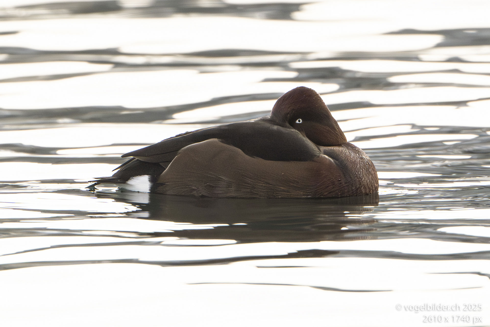 Ein Kolbenentenpärchen schwamm auf dem Gewässer. Bald einmal tauchten sie nach Wasserpflanzen - ihrer Nahrung.